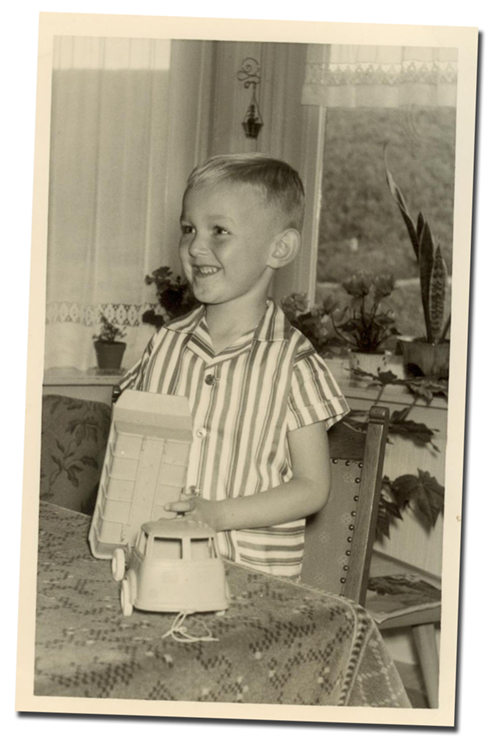 Deze foto van mezelf vond ik in de oude doos bij ons op zolder. Ik sta hier in een huiskamer in Andijk en uit het raam is er zicht op het hoge dijklichaam. Ca.1963.