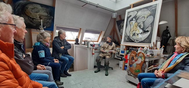 Na een bezoek aan de expositie in Heerhugowaard werd in een koolvlet een vaartocht gemaakt over Westfriese sloôtjes. Zo kon onder andere een inspirerend bezoek worden gebracht aan de geïsoleerd in de polder wonende kunstenaar Ben Veer: