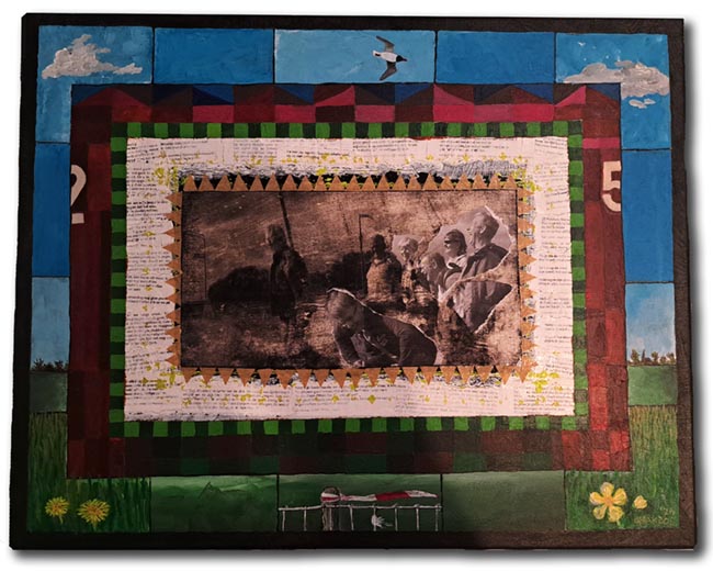 “Deurloupersjubileum” Sjaak Bos 2025 acryl/mixed media 40×50