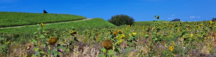 Wie deze zomer over de Westfriese Omringdijk het dorp Eenigenburg passeerde zal zijn verrast bij het zien van een groot veld met blinkende zonnebloemen. Ik was dat in elk geval wel. (Pas later realiseerde ik me dat het hier ging om “het Pronkstuk”, waarover we eerder op de Sait berichtten ( zie deel 1 en deel 2 Een groep betrokken buren uit de buurt van Schagen kocht twee jaar geleden een stuk boerengrasland aan de dijk om er samen een biologische boerderij te beginnen. Begin dit jaar lag het land er nog als een strakke grasmat bij, maar in de loop van het jaar evolueerde daar de boel in een bijna Frans landschap met klaprozen, zonnebloemen en korenbloemen. Het gonsde en fladderde er van de insecten. Voorwaar een Pronkstuk!